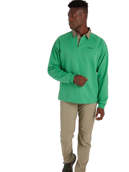 Блузата Mountain Works Rugby е предпочитан модел от катерачите заради плътността си и издръжливата конструкция. Подобрената материя е издръжлива комбинация от памук и полиестер.