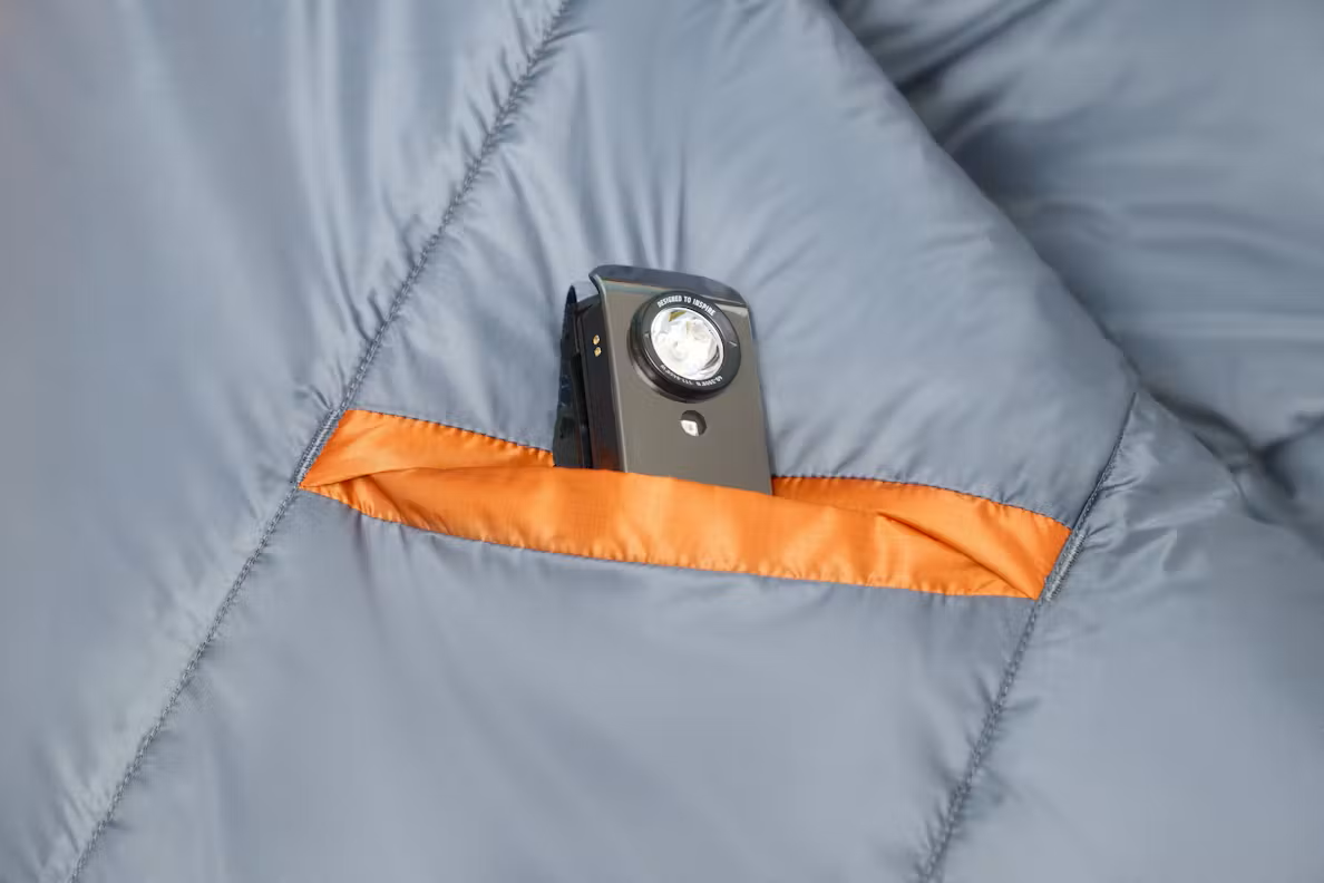 Просторната зона за краката осигурява място за отпускане и възстановяване, докато изолиращата лента по ципа предотвратява навлизането на студен въздух, когато се унасяш в сън. Вътрешният джоб е идеален за съхранение на контактни лещи или челник, а включената компресионна торба позволява лесно стягане, прибиране и потегляне – било то за седмица или само за уикенда.