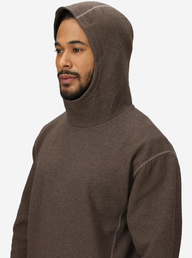 Удобен и функционален мъжки суитшърт със структуриран плат, съчетаващ мека вътрешна повърхност с текстурирана външна страна и практични детайли, подходящ за ежедневие, къмпинг или активни преходи.